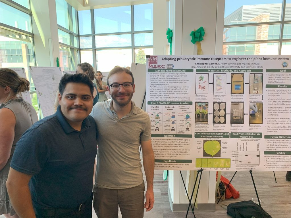 We’re excited to have two undergraduate researchers with us for the summer. Mikayla (CSU, Biology) will work with Sam on HopBA1/ZAR1-related physical interactions, and Jed (CSU, Physics) is working with Adam to use machine learning to generate and test hypotheses about the function of the Arabidopsis TIRome.