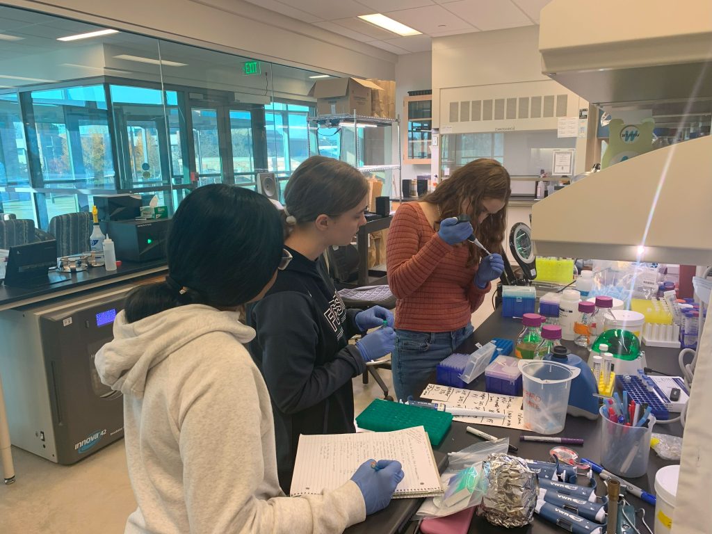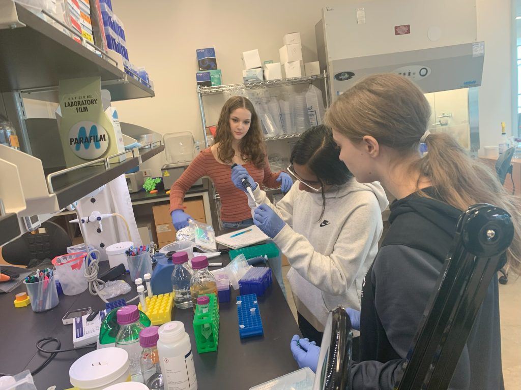 Keira and her Genetic Modification Team from Fossil Ridge High Schol visited the lab to work on their capstone project editing the Arabidopsis genome. Nice pipetting!
