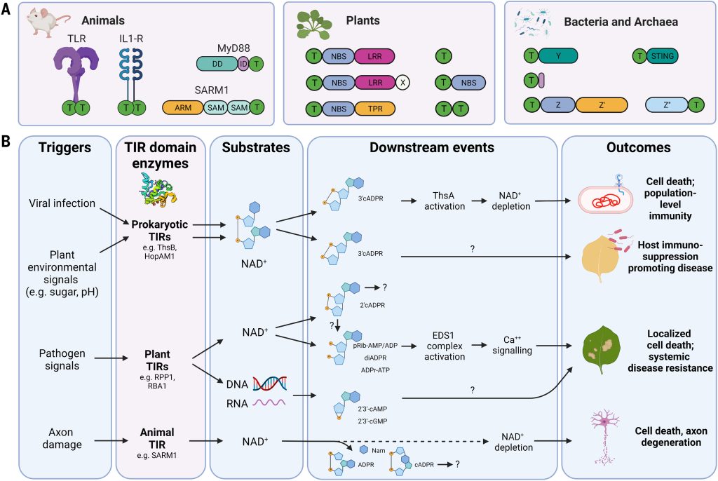 Had fun writing this review on what we know about TIRs with Kow Essuman, Jeffery Milbrandt, and Jeff Dangl: “Shared TIR enzymatic functions regulate cell death and immunity across the tree of life“